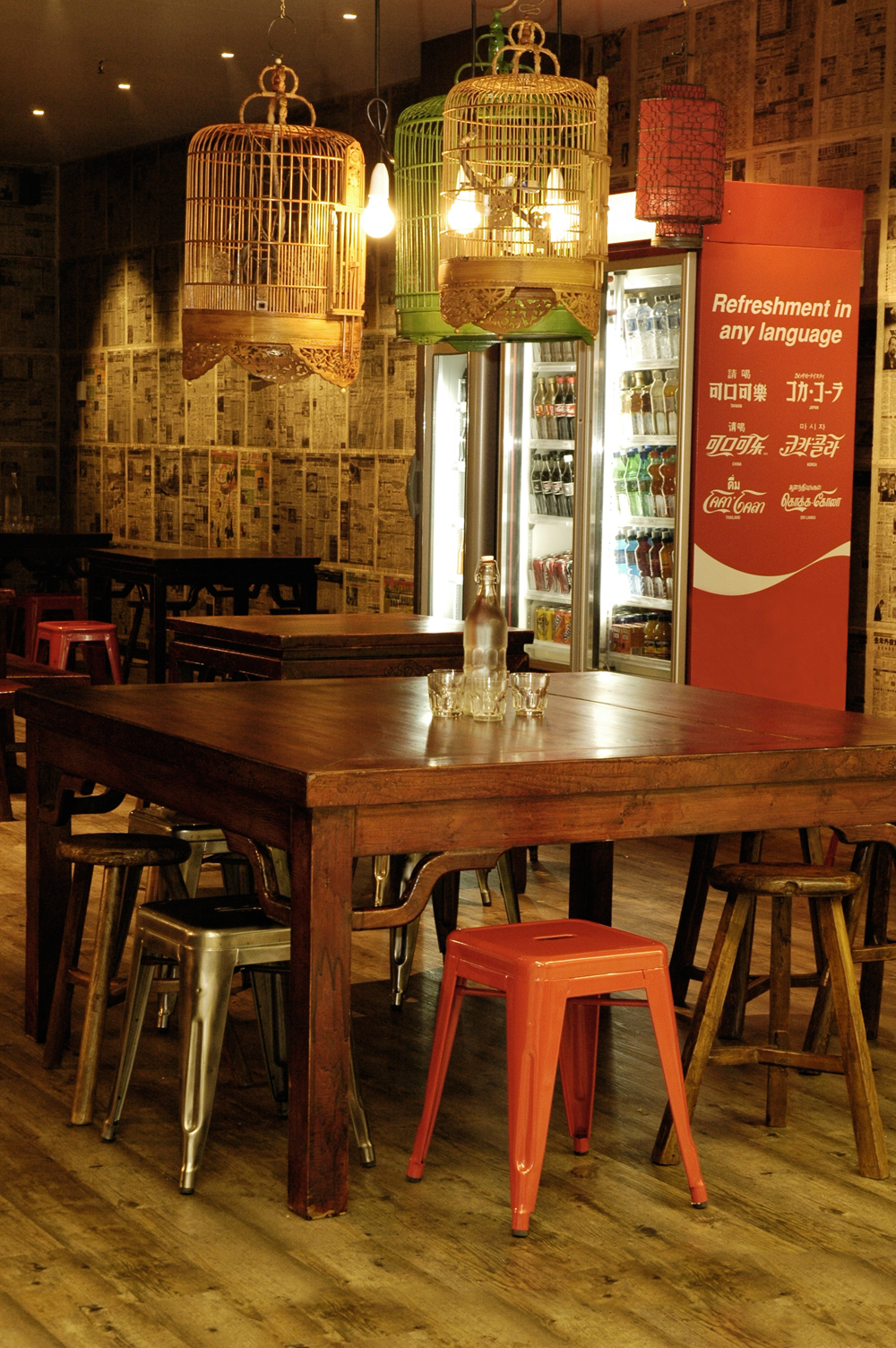 Zhen’s Kitchen is a canteen-style Asian restaurant located in Darwin. Designed by Andrew Waller Design, the eclectic interior references the ‘Night Markets’ in Taipei where the counter areas have taken on the form of street trolley eateries with billboard-style street signage. It’s all about mismatched gung-ho furnishings comprised mainly of randomly-sized wooden tables and stools in the relaxed mode of make shift ‘drinks crate’ clusters seen all over Asian streetscapes. Collections of lanterns and birdcages hang from the ceiling and The Australian Chinese Daily is plastered to the walls, giving something to stew over while waiting for your food. The fitout alludes to an Asian streetscape, but this is a classy, well-conceived design despite a tight budget. [Photo: Simon Furlong]