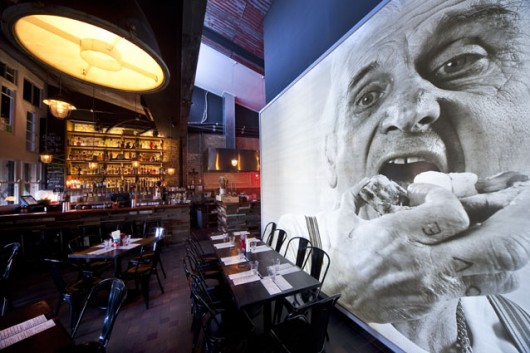 Aldo Nicolosi’s face has become the backdrop to the venue, with a large-scale photo of him backlit on one of the interior walls and the entire space influenced by the Mr Alfredo character.