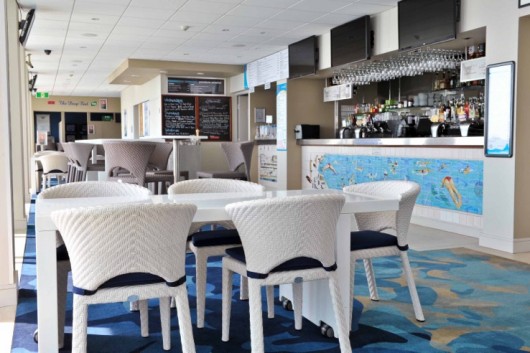 The updated Bondi Icebergs has the look and feel to match its renowned location – ocean breeze and bright blue views. Italian tiles machine-cut to strips give the impression of the timber slats of a boardwalk, pier or esplanade. The carpet is a custom-designed axminster that embraces the dappled colour of the sea.