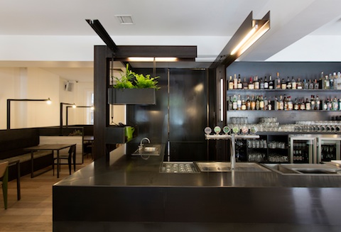 Hundreds of recycled timber sections were collected and stacked to form a robust wall reinforcing the dining hall. Mesh frames display ingredients, reminiscent of the Colonial butcher, where meats were hung outdoors in plain view. The hall is illuminated with suspended fluorescent lights from Mance design, lighting up individual tables in a modern reference to the candles used before the advent of electricity. The dining hall has a side entry that fulfils Melburnian’s desire for discovery and hidden access.
