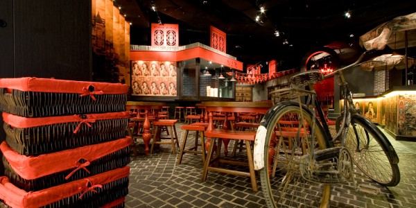 The interior, designed by Giant Design, is like taking a trip down the longtangs of Shanghai, minus the rickshaw, so you’ll have to tread the Phoenician Stone cobblestone paving to take in the red flags, traditional Shanghai artwork Signature Prints wallpaper, bicycles, and wooden front doors lining the ‘streetscape’ (that are more likely to ‘shanghai’ you into a neighbouring Calvin Klein undie store than a traditional Chinese household). But amongst all the Lonely Planet authentico, Chen hasn’t forgotten the true heroes of New Shanghai’s past — the dumplings. A live dumpling ‘theatre’ allows diners a glimpse of what’s going into those steamed and fried packages. And Chen isn’t done with a single offering, already there’s a Bondi Junction restaurant, a Charlestown restaurant and Singapore and Shanghai restaurants due to open early 2011, all under the New Shanghai banner. From there, the world!