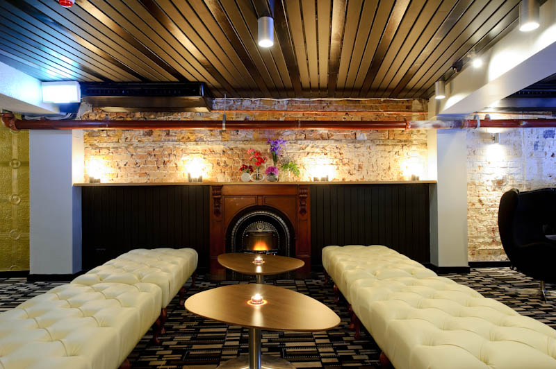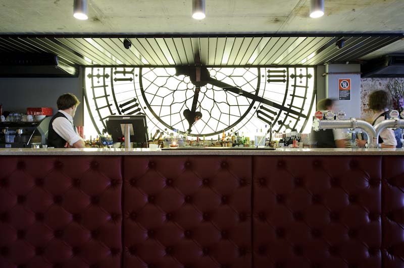 The owners behind Gotham Bar weren’t fussed about buying into the idea of laneways. They figured, why hide down a laneway when you can set up shop on one of the most famous streets in the city — Oxford Street. They’ve dubbed it a ‘street bar’. Which really isn’t a novel concept at all. What is novel is the design by Squillace Nicholas. The old-1930s building has been given a Gotham City makeover, with a black and white clock silhouette behind the bar of superhero proportions. Pressed metal ceilings, chesterfields, red leather bar and vintage fireplaces all combine to complete the super transformation.