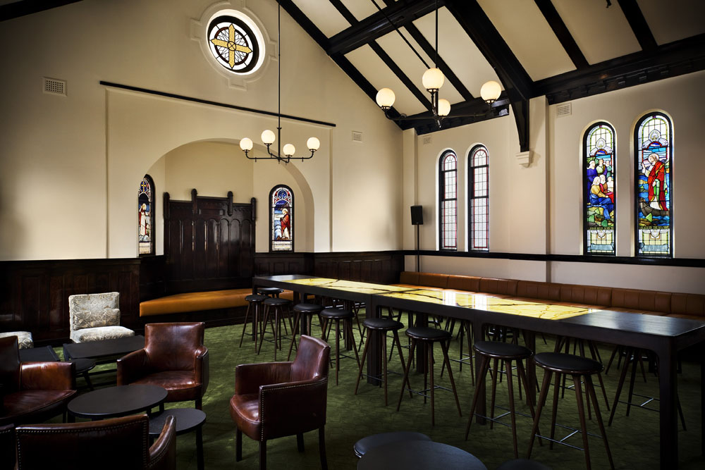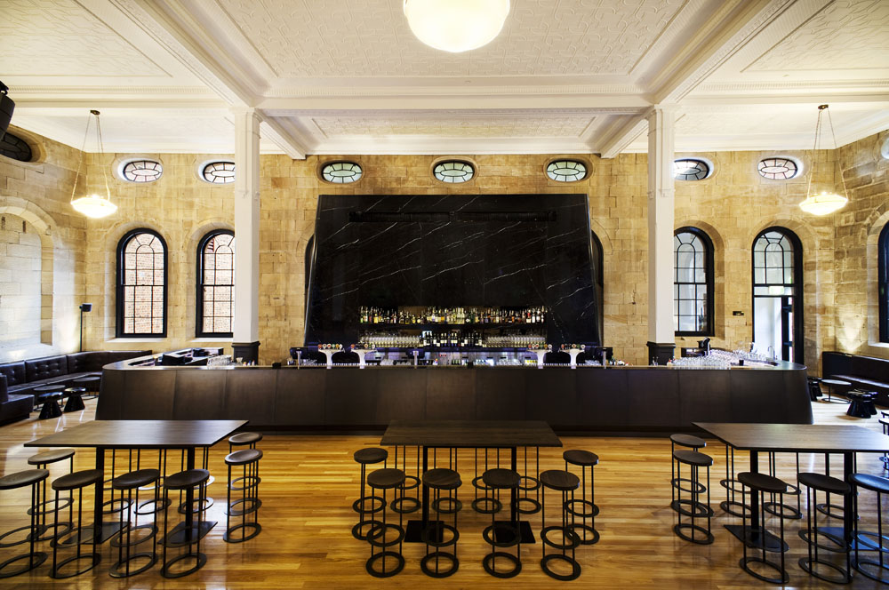 There are certain elements about Bar100 that feel a little left of centre. Staring deep through the eyes of a stain-glassed Jesus while sipping on something a little more substantial than communion wine could raise more guilt then even a Catholic could bear. The setting for Bar100’s functions hasn’t heavily deviated from the original Mariner’s chapel design. Why? Because it’s beautiful. The high gabled roof and pristine stained glass has been complemented with a supremely long onyx dry bar that reflects the luminescence of the mostly white room. Leather lounge chairs and banquettes take the place of hard wooden pews, and provide a darker, luxurious side to the chapel. There’s plenty more to Bar100, the precinct spans three levels, including the 8Brothers brasserie and woodfired pizza, with new architecture by Woods Bagot and interiors from SJB, making for a top stop at The Rocks.