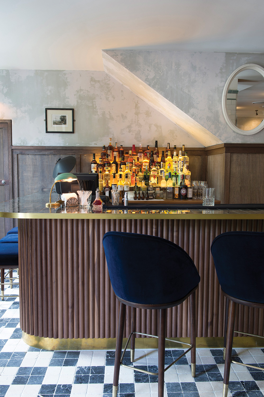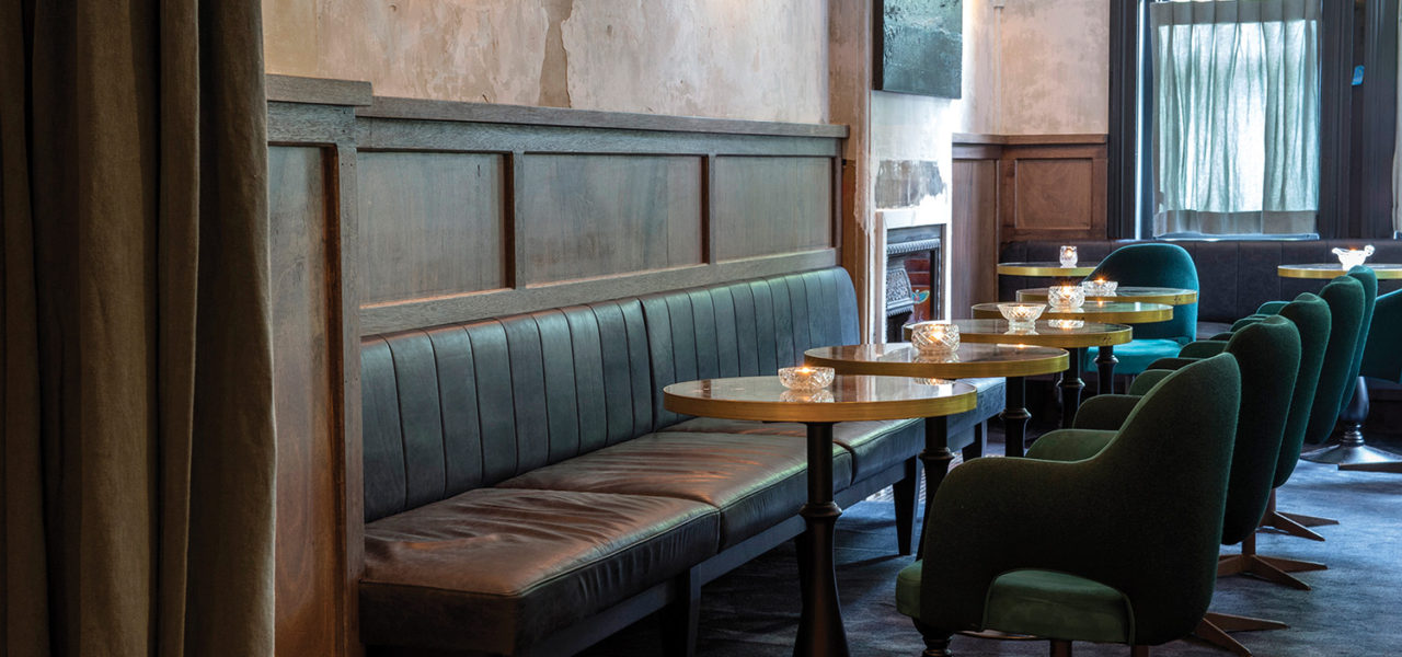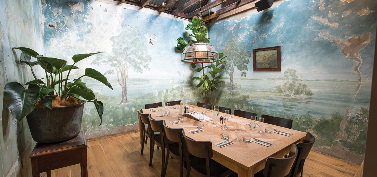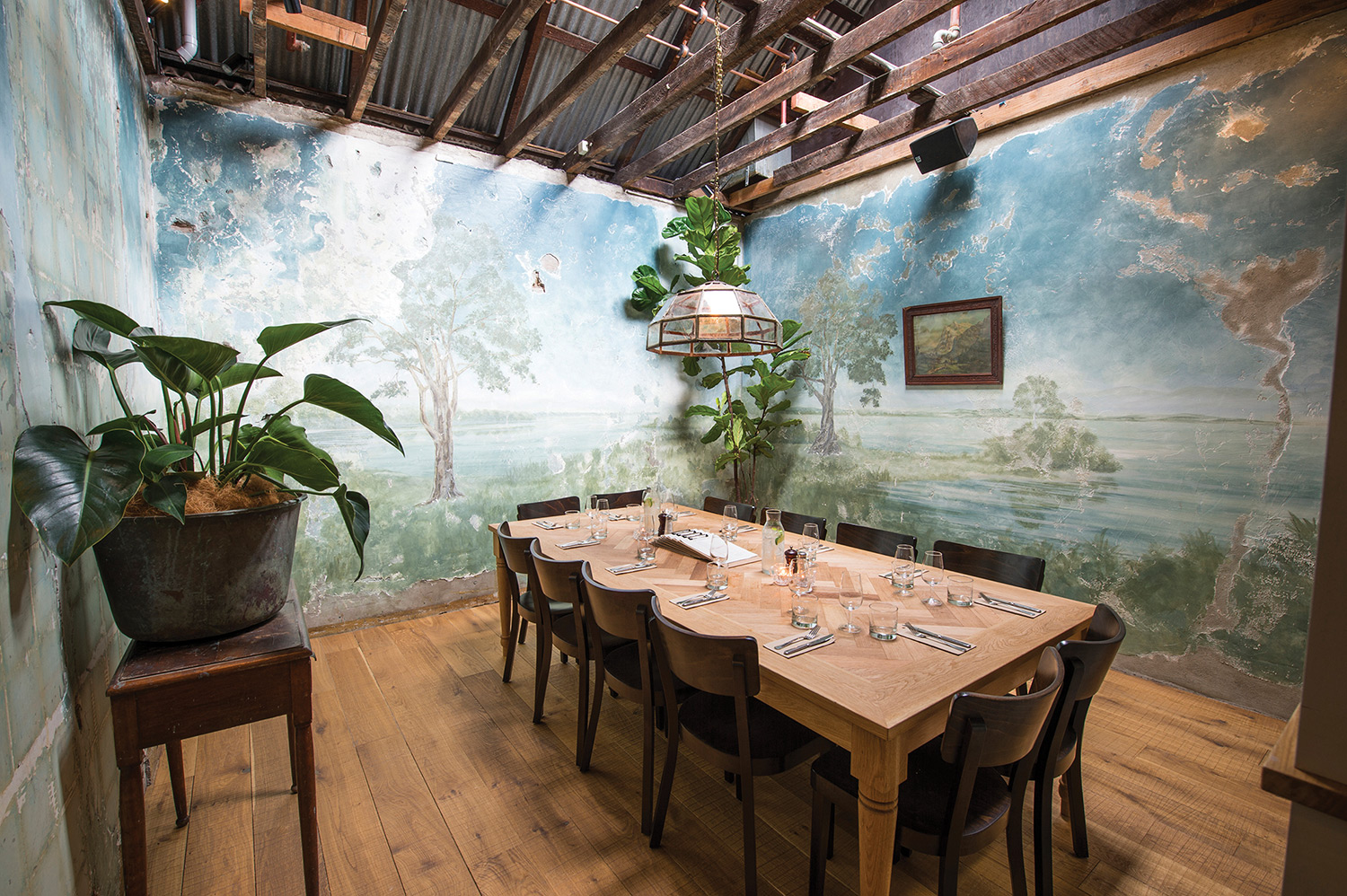 The Paddington has been brought to life by a design team including Kelvin Ho and Emilie Delalande of Akin Creative, stylist Amanda Talbot and Justin and Bettina Hemmes. Designed as if it was an old local butcher, it boasts a relaxed British charm with white glazed ceramic tiles, painted timber panelling and dark timber furniture. Upstairs the space becomes more intimate with booth seating, panelled walls, a leather-fronted cocktail bar and mirrored tables. The private dining room is surrounded by a floor-to-ceiling distressed landscape mural painted by local Sydney artist Desmond Sweeney.