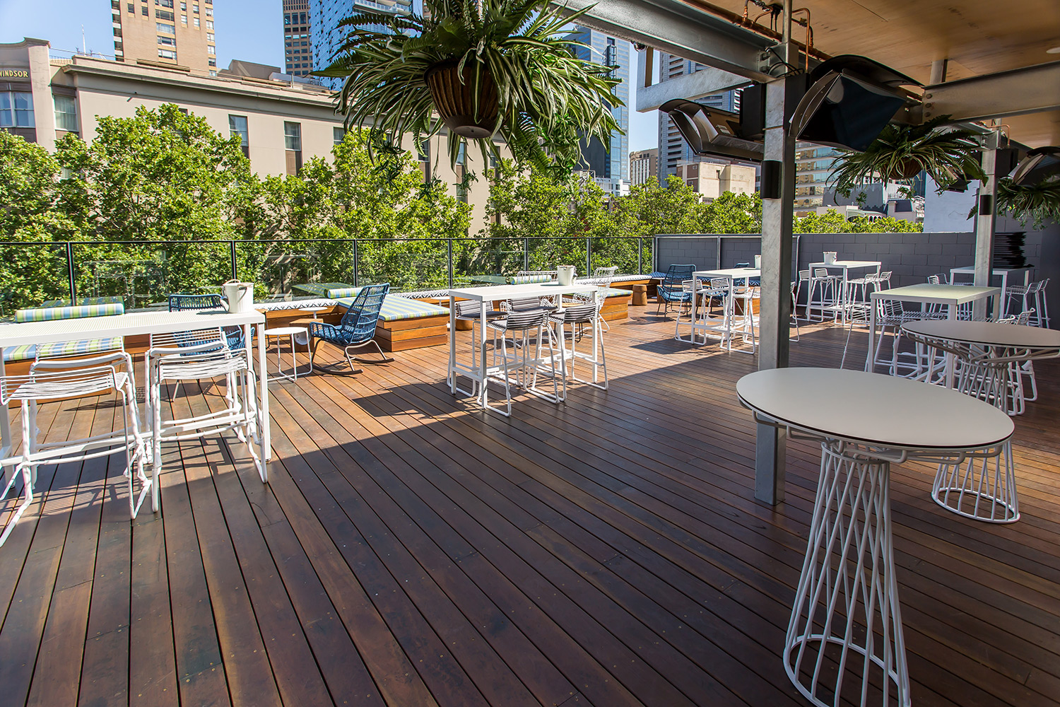 Bromic gas heaters take the edge off the cool of the Melbourne evenings while soon-to-be installed awnings will provide some relief from the brutal mid Summer sun.