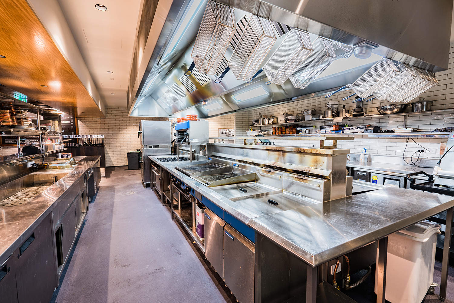 The engine room of the operation is the kitchen. It’s comprised of a two-line, double conveyor belt system with prep area, four combi ovens, pizza maker, separate wash area, walk-in cool room, walk-in freezer… More than 20 staff keep it zinging in peak time.