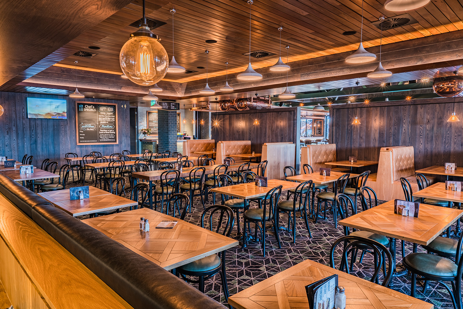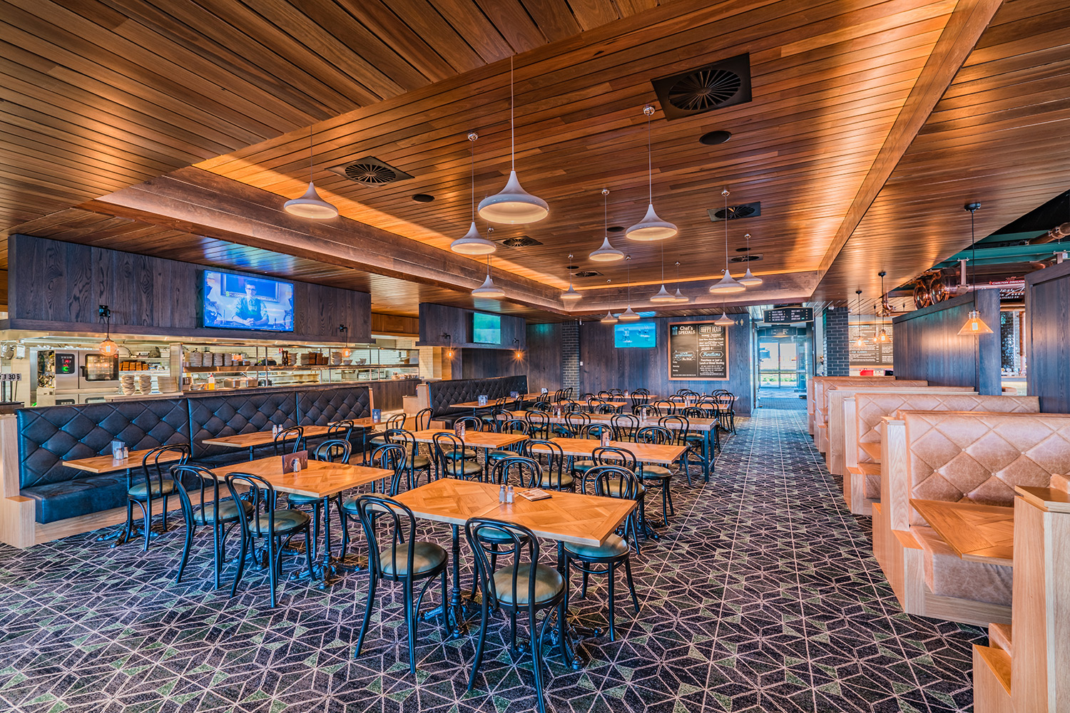 Justin Malouf: “The brief was for a big western suburbs-style pub with a top quality fitout. Ideally it’d be two pubs within one — the sports and gaming section on one side and the family and lounge/entertainment/food on the other side.”