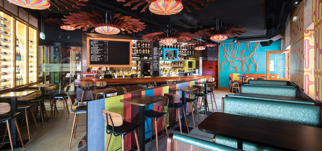 Elliott describes the look as one that evokes a classic holiday postcard or a sitcom TV set. “We want people to be drawn in from the street by all the colour and life and feel comfortable to be themselves, whoever they may be,” he says.