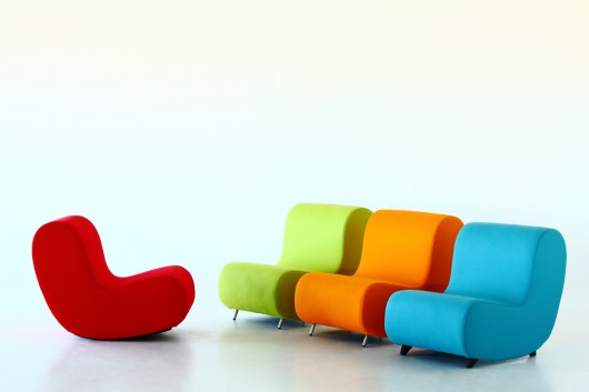 Simple (bottom) is a modular seating range whose minimal silhouette allows seats to be combined to form an infinite sofa. Also manufactured by Area Declic.