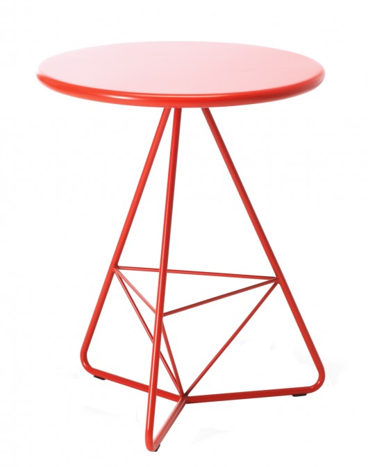 Tria (top) is a table range made entirely of metal, available in an aluminium, black, white, red and orange painted finish.