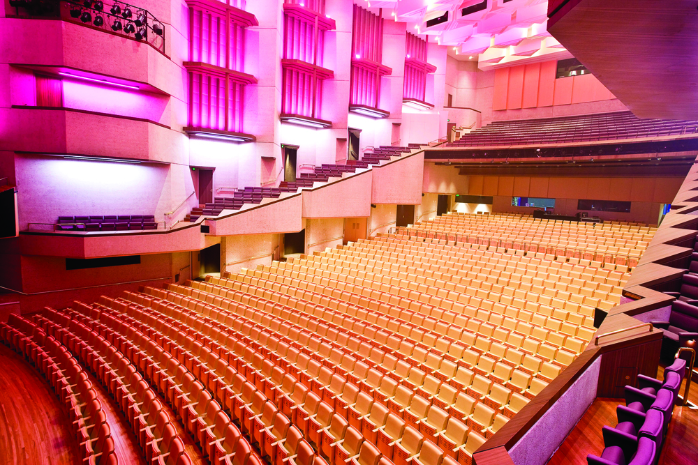 The $35m refurbishment has included new seating and improved acoustics for the 2000-seat Lyric Theatre and the 1800-seat Concert Hall (by Marshall Day), as well as new public spaces such as bars, cafés and foyers. And then there’s the lighting. Wow. Take one look at these images and you immediately begin to un- derstand the amazing impact of the investment in the latest in lighting technology. Plenty of Anolis LED lights were specified. Anolis LED fixtures are known for their long life, low power consumption and low maintenance and they were installed by the dozen throughout the Concert Hall, Lyric Theatre and ground level bars. ULA Sales Manager Blair Terrace worked with AECOM Senior Lighting Designer, Rick Morrison, in collaboration with QPAC’s Lighting Department toarrive at the best solution. “As an example,” noted Blair, “The QPAC Concert Hall can change mood and theme virtually at will, with subtle changes in the colour and intensity of the Anolis ArcLine strips that Rick Morrison has specified. Patrons have a new experience with every production they attend, even before the curtain goes up.” Over 50 Anolis ArcLine36 Optic RGB strips were installed in the Concert Hall for roof and wall wash- ing, as well as underneath the foyer bars of the Lyric Theatre and Concert Hall. Anolis ArcSource 7 Warm White fixtures were installed over the tops of the bar for an even rich and warm glowing effect. In addition, 40 SGM Palco’s were used on the platforms for ceil- ing and organ lighting. All looks amazing. [Photos: Christopher Frederick Jones]