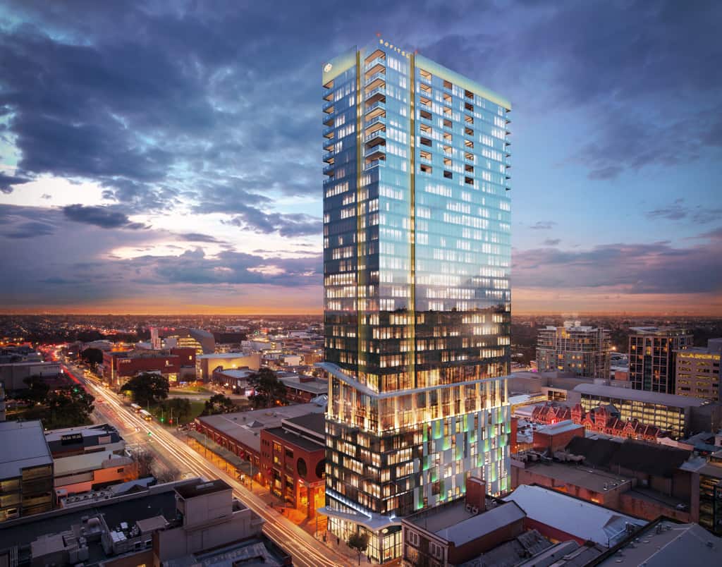 Sofitel Adelaide is part of a 32-story mixed-use tower by Palumbo Group, which in addition to being a hotel, will also house one of the tallest residential developments in South Australia. The glass-walled building is set to become a glittering addition to the skyline, especially at night.