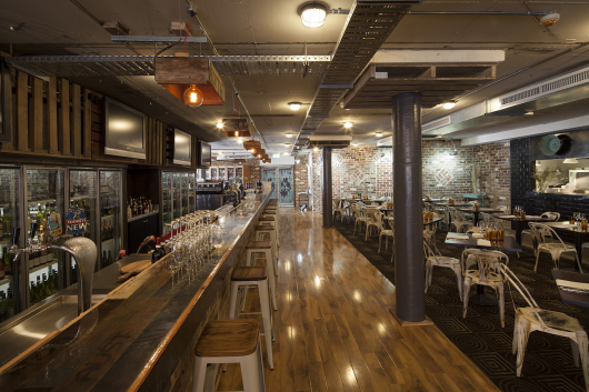 The AV system features a BOSE sound system installed by the operator to produce a warm rich sound without intrusive speakers. The many screens throughout allow the space to host broadcast events, but visually sit back as to not intrude on the casual dining experience when not required.