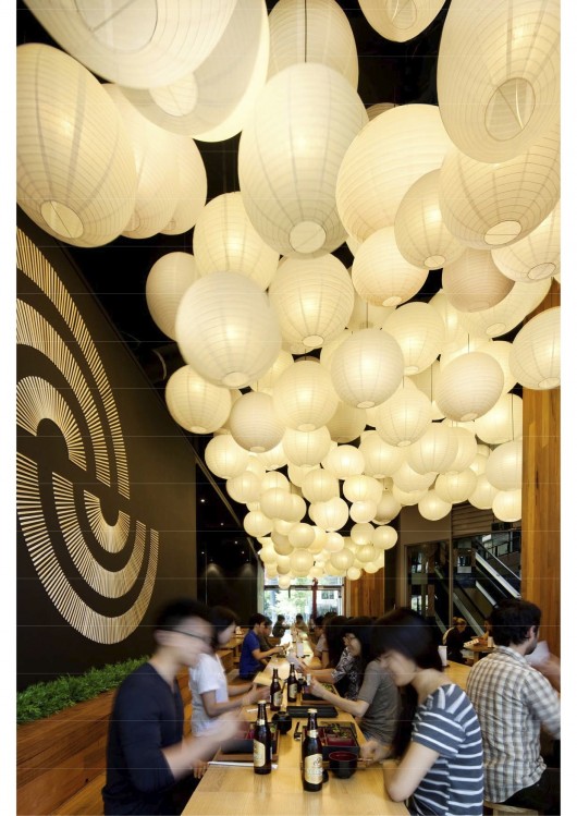Keeping with the Southern-Japanese influences that inspire Ramen Ya’s noodles, the conceptual idea references traditional Japanese push-cart stalls (‘Yatai’) which are synonymous with pork-bone ramen. Key aspects of this theme include bright paper lanterns that light up the night, use of low-cost natural materials (generally timber) and an intimate and informal dining experience.