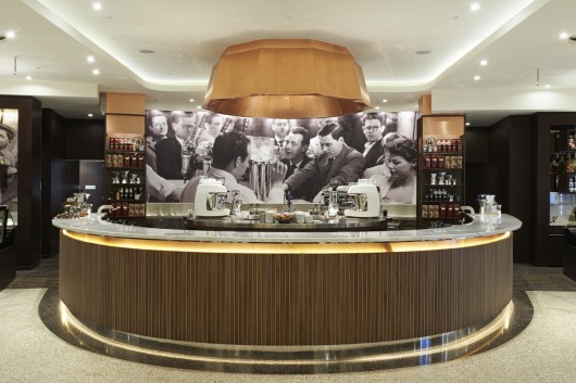 In a twist of fate, Brunetti is moving back to the exact location where it originally opened in 1974. Designed by owners Fabio and Yuri Angelé’s architect brother, Joe, the café’s circular design and high ceilings add a sense of theatre and grandeur found in many of Rome’s most prominent cafés. Terrazzo and marble mosaics feature throughout the interior, which is complemented by Italian-designed display cases, contemporary pendant lighting and soft furnishings, murals of black and white images taken in Rome in the 1940s and Brunetti’s signature bisazza tiling.