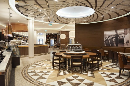 Sicilian chef Giuseppe Santoro, who recently arrived from Italy, heads up the kitchen. Throughout the café, glass kitchens provide an interactive experience for customers enabling them to see the hand made production of products for themselves.