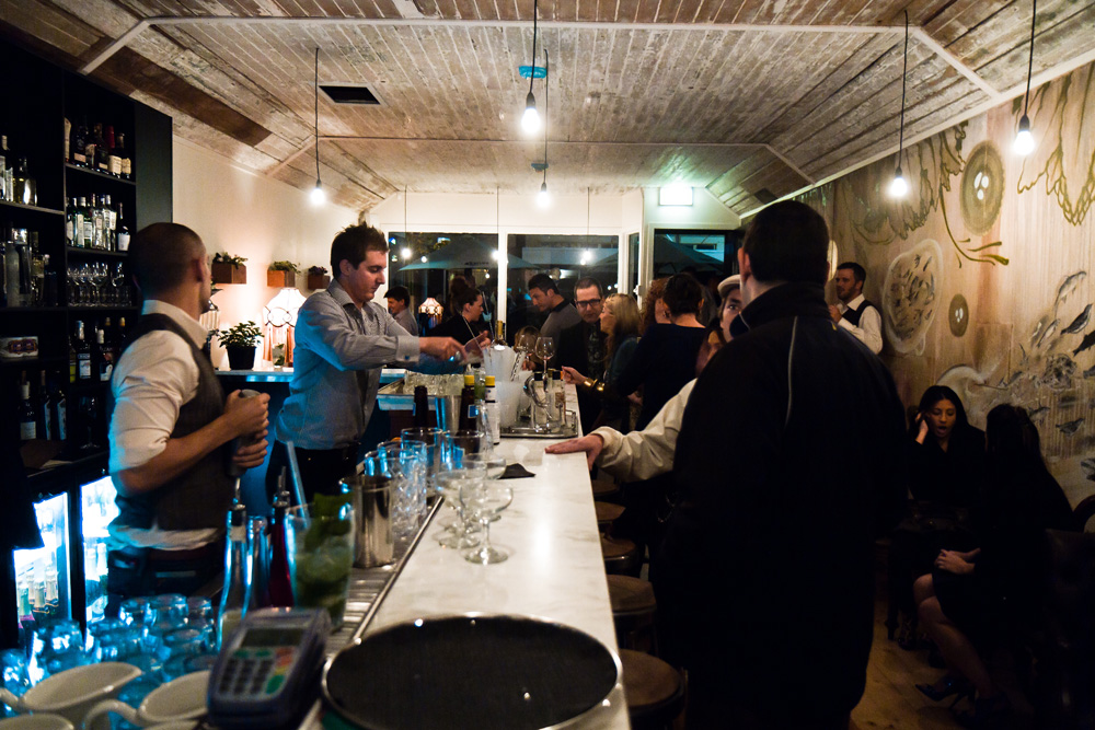 It seems Brisbane finds a new pocket of territory to forge a hot spot every few weeks. Canvas Club is one of the first to come together in Woolloongabba under Brisbane City Council’s new small bar license. Forging on from her amazing work with Nic Brunner at Cloudland, and her own reimagining of Aladdin’s Den at Cloudland Cellar, Alexa Nice has taken to this small cocktail and wine bar with her considerable talent. She’s also brought in the talents of Jimmy Bliggs and Troy James, who are responsible for the custom wall art. Speaking of walls, Nice has used plenty of recycled timber panelling, which encompasses the venue from floor to ceiling. Planter boxes and large gilt mirrors cap the walls off, and combine with Parlor Furnishings upholstery and Warwick fabrics. While the white onyx bar is the perfect platform for Canvas cocktails, absinthe fountains and hand carved ice. Another job.