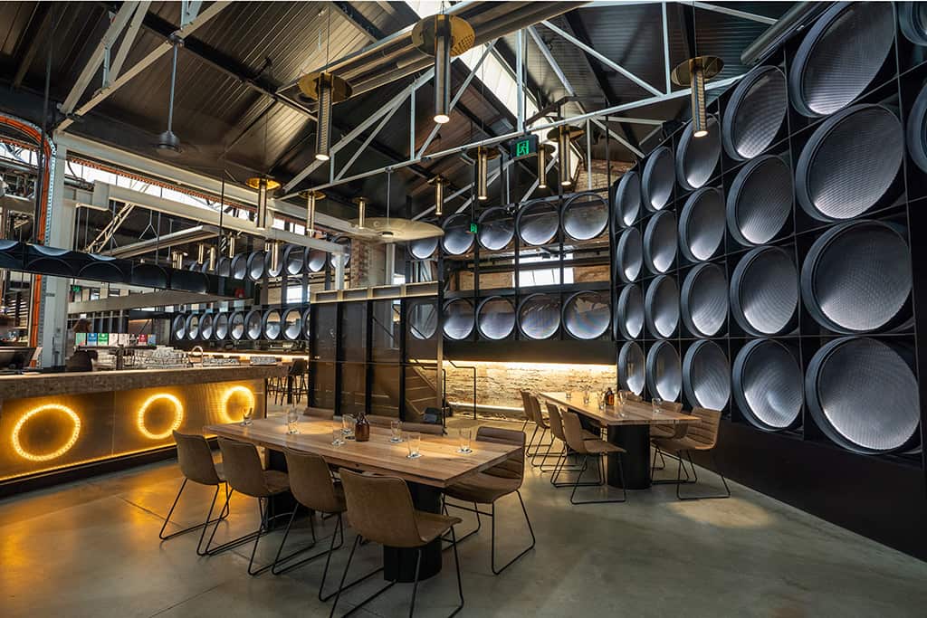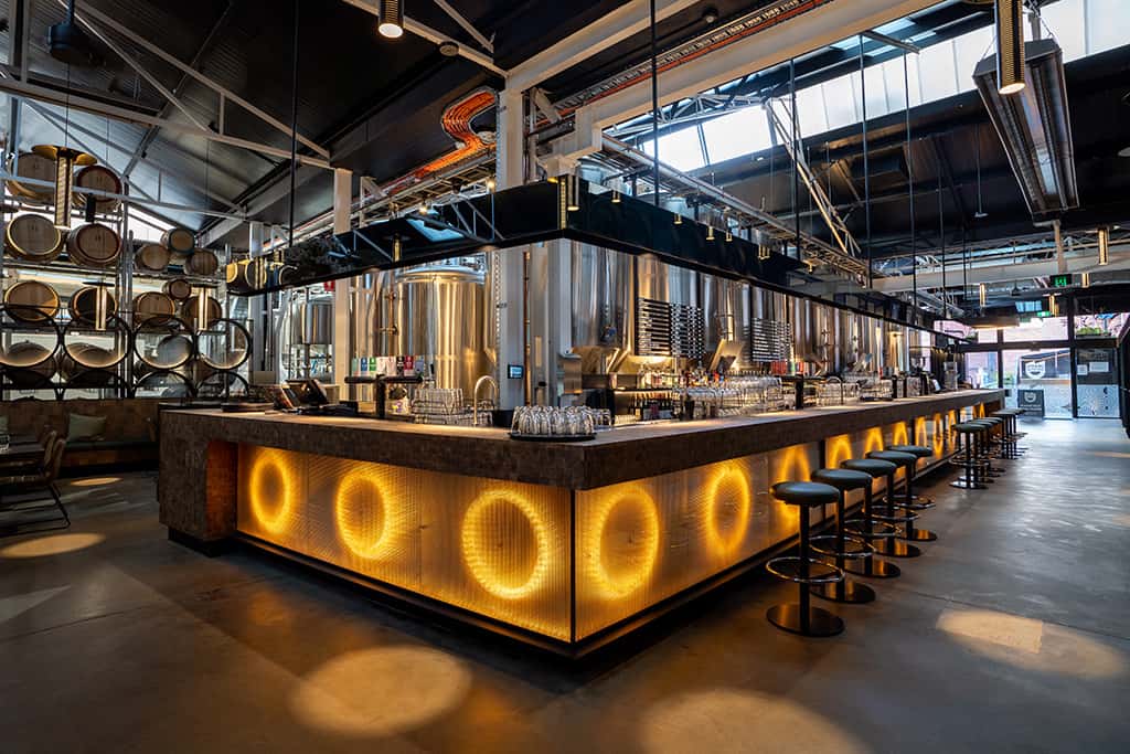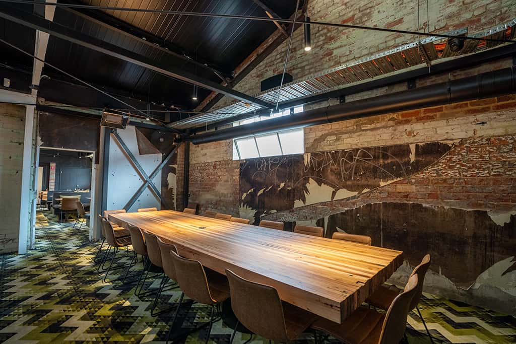 Built into an old car workshop site, Deeds Brewery Taproom is a dual-level multi-purpose space. The main bar area is where the real action is. There are 28 taps all pouring Deeds brews: “We’re prolific,” enthuses Deeds Director, Pat Alé. “We have two new beers on every two weeks. We’re always experimenting and there’s always something new for our patrons to try.” Walk through the bar and you’ll enter a large function and dining area. Upstairs is a 20-pax private dining room called the Brewers Table, alongside further dining options with a bent towards dining tables and seating.