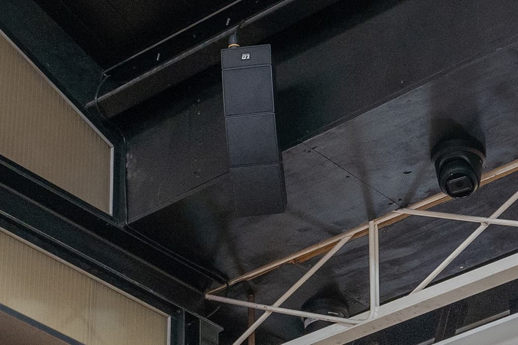 The Taproom’s audiovisual spec is a good fit. The open-plan nature of the space is potentially problematic for controlling sound, but the AV integrator, Light and Sound Solutions (with Technical Director, Daniel Thomas, running point on the project) took a punt on a mini array loudspeaker solution from German audio company, LD Systems. The selection of the super-discreet line array was in no small part driven by the client: