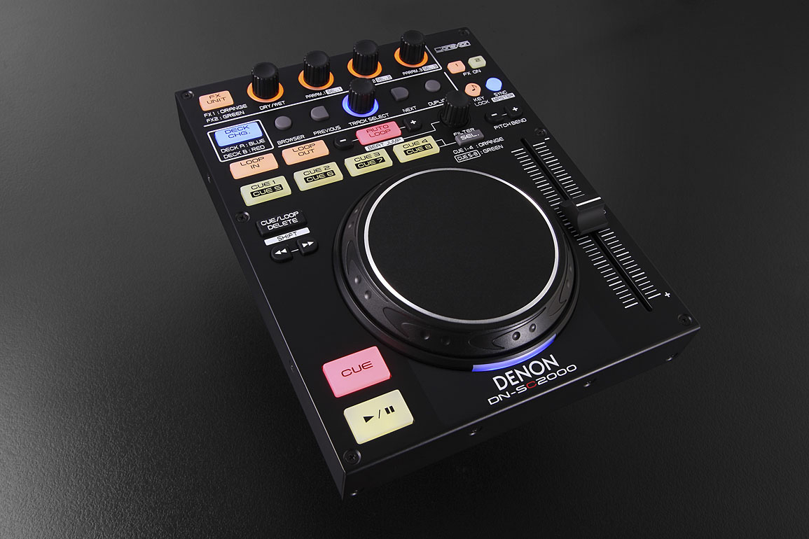 The Denon DN-SC2000 Controller is an affordable, compact, professional-grade, solid steel MIDI controller for laptop DJs. At just $499, it gives a professional interface for mixing and controlling DJ sets, optimised for use with Traktor Pro. Features include a 105mm touch-sensitive jog wheel, 100mm pitch slider with high 14-bit resolution, auto-loop, pitch lock and automatic beat sync. And its steel casing and durable rubber buttons will withstand the most hyped up party DJs.