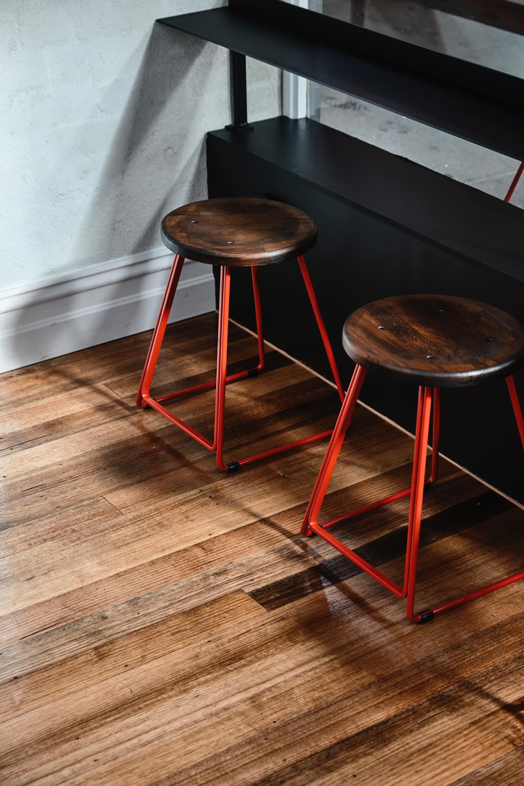 Cutting through, is a rich fiery coloured powder coat used in the frames of the stools and the minimalistic menu board.