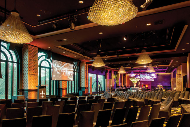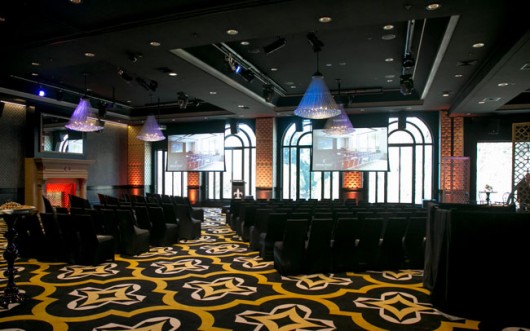 “There are a total of eight HD projectors and screens in the venue each of which is flanked by JBL PRX412M speaker cabinets to provide front of house,” explained Nick Orsatti, General Manager at Fredon. “Added to that are forty-four JBL Control L47LP in ceiling speakers for background music typically used for weddings. There are also provisions for powered subwoofers if required with four of them on site. It can certainly kick along quite well!”