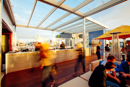 The rooftop venue is something to behold. Mark likes to think of it as a touch of St Tropez or Monaco (where he likes to head for his annual GP pilgrimage). It has a license for 300 and is replete with sun lounges, dry bars, and cabana-style seating options. The views are as amazing as they are uninterrupted. “It’s a place for people to relax. We want people to feel comfortable about taking the lift up to the rooftop in their shorts and polo shirt, chill with a drink and some live acoustic music, and not be belted over the head with doof-doof.”