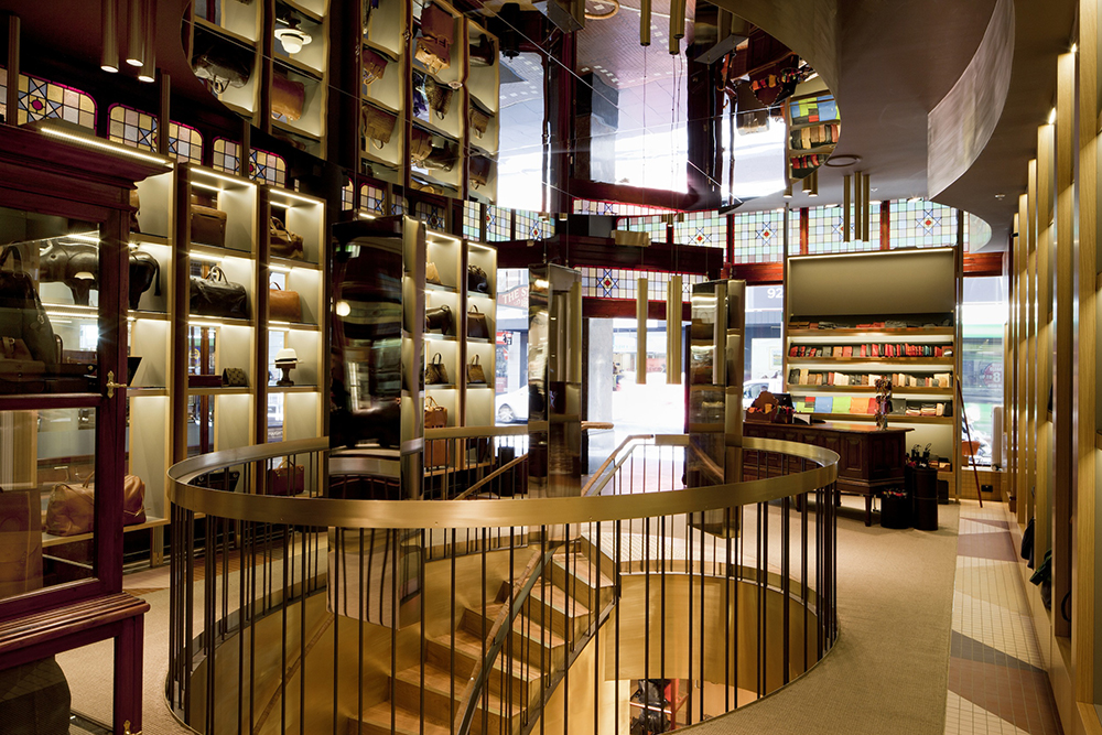 Designed by architect Adrian Spence (one half of the firm Richards & Spence), the 170sqm boutique is set over two levels, with dedicated larger spaces for luggage, handbags and fine leather accessories. The new store is positioned at the George Street entrance the arcade and has some good neighbours in Apple and Louis Vuitton.