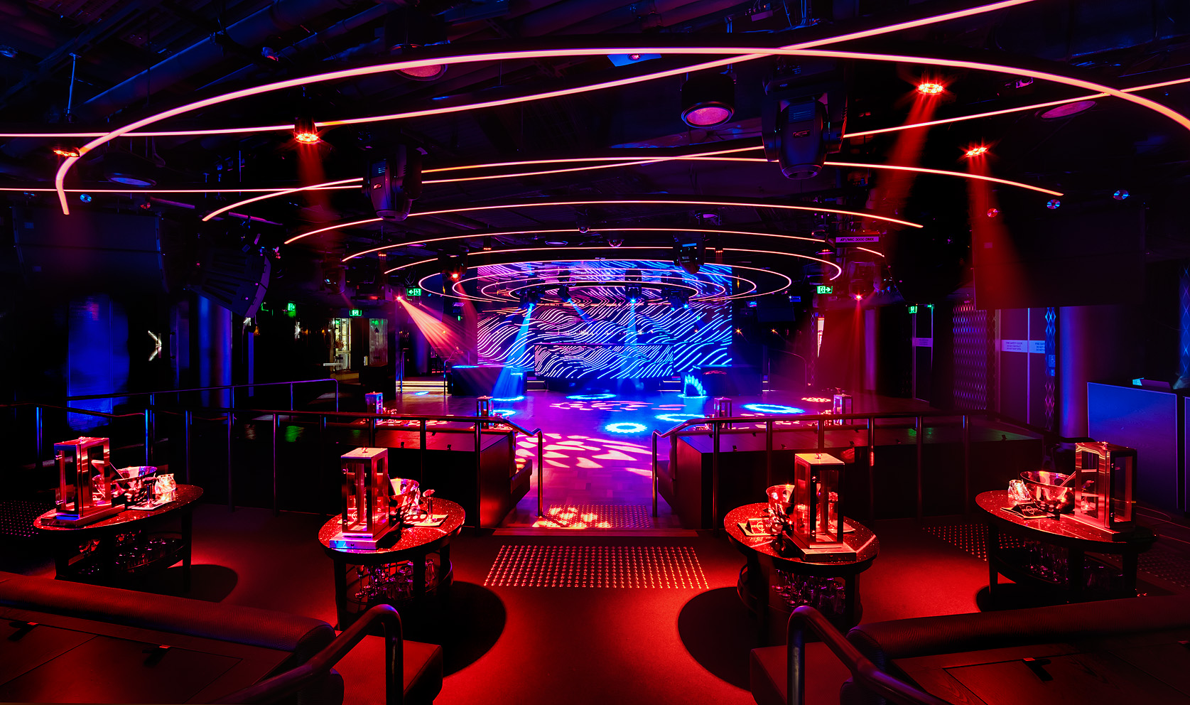 Elsewhere in the club the dance systems are comprised of Martin Audio W8LM line array, WSX subs all with VHF bullets with lower level bar areas catered for with 76 elements of Martin Audio Omniline line array and subs. With DJs even playing in the enormous unisex toilets a high-end Martin Ceiling speaker system was even installed to satisfy waiting punters.