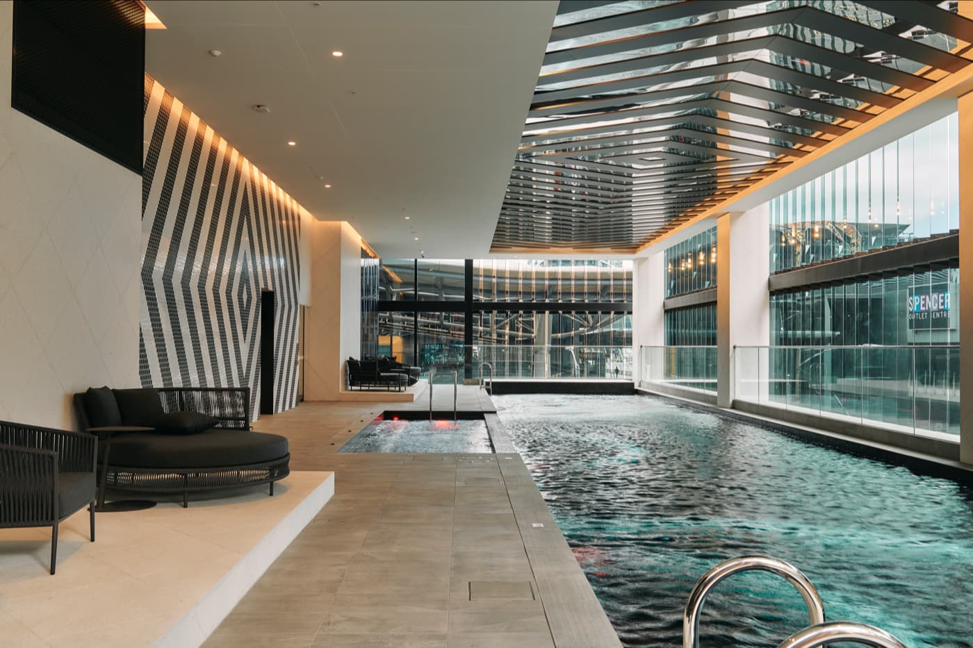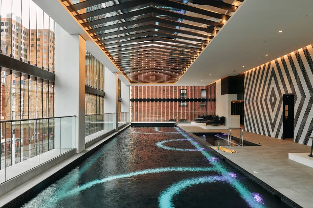 The hotel is dedicated to wellness with a dedicated recreation floor featuring a 25-metre swimming pool, hot tub, sauna and well-equipped gynamsium. Open until 10pm, this is one of only a few hotels pools in Melbourne where guests can swim at night.