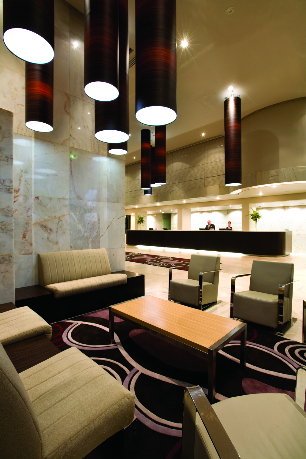 Citigate Perth is a four star 278-room hotel managed by Mirvac hotels. The hotel had previously been the Orchard/Grand Chancellor Hotel and its dated interior was in dire need of an upgrade. Woodhead was commissioned to provide design services for the $9m refurbishment, transforming the asset with a contemporary design that’s more aligned with the Mirvac brand, while giving it a sense of that ‘Perth’ feel. The three elements Woodhead figured would give the hotel a touch of the Western capital’s appeal were a healthy dose of timber veneers, floral designs distinct to WA and aboriginal motifs. But as with all renovations, Woodhead had to strip away what was left of the old hotel. Gone are the brass trim, etched glass, elaborate chandeliers and marble surfaces, replaced by light and dark timbers, a stylised version of WA’s state flower, the kangaroo paw, emblazoned on windows and light fittings, and local artist’s work screenprinted onto silk. Task lighting has been simplified, making way for large cylindrical pendant lights to snake en-masse through the lobby. And new plasterboard, floating ceiling draws guests into the café/ bar area that had previously been tucked away in a corner out of sight. And entertainment is projected onto the bar bulkhead when required, instead of cluttering up the place with plasma screens. On top of all this Perth modernisation, Woodhead also took care of a soft upgrade of the guest rooms and suites, corridors and lift lobbies, and an upgrade of the roof terrace pool deck area — which is the best way to enjoy Perth, by the water.