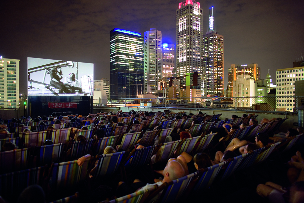 Where you watch a movie is becoming just as important as the movie you watch. If you’ve seen a movie at one of the more inspiring open air cinemas you’ll know that nothing ups the atmosphere like the great outdoors. So how about movies on top of a city building to accelerate the excitement?Melbourne’s Rooftop Cinema is perched six stories up on top of Curtin House, Swanston Street. Half a city block deep and 70 metres wide; the open-air venue features comfortable seating on canvas deck chairs for 200 people.Just like a private backyard high in the sky, the viewing area features red-jarrah timber decking and surrounding banquette seating for pre-or post-film lounging on a hot Summer’s evening.To complete the experience this rooftop paradise also includes a fully licensed bar/catering facility operated by (building stablemates) Cookie. Dinner and drinks are served before or during the movie — whichever you prefer.The Rooftop Cinema is the brainchild of Melbourne publisher Barrie Barton, a former national marketing manager at Moonlight Cinemas. “A friend in New York told me about this fantastic set-up, where a cinema screen travels to different rooftops around Manhattan,” Mr Barton said. “You get sent an email saying, ‘This Saturday, it’s on at a rooftop on Bleecker Street, or wherever,’ and you just turn up.” That was Mr Barton’s inspiration and three year of planning and $1m later the stunning result exceeded even his and business partner Francesco Nazzari’s expectations. “When you see a movie like Lost in Translation or Blade Runner in the Rooftop Cinema it adds something completely amazing.” Every great cinema needs a state-of-the-art sound system — in this case from Martin Audio powered by QSC PLX2 amps. “The Martin system is very different; it’s more like a huge hi-fi system,” said audio designer Nathan Pugh of One Productions. The Rooftop Cinema hibernates during winter, but Cookie maintains a far-from-shabby Rooftop Bar in the mean time.