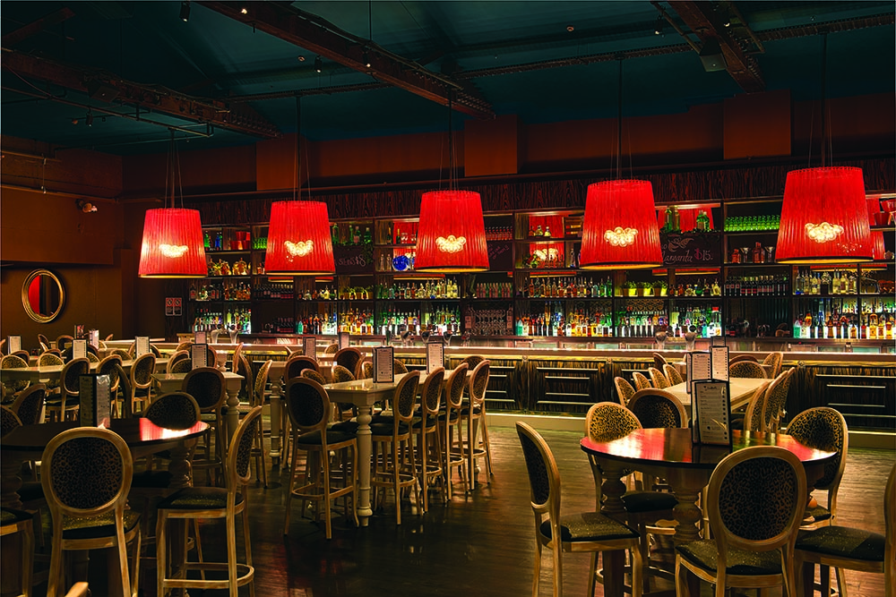 The team paid particular attention to adding extra drama with eye-catching light features. “The bar is such a focus for any premises, but in keeping with the scale and grandeur of Star Bar, the grand light fittings were created to reinforce and celebrate the scale,” Scarvelis continues. “Anything less would just not do justice to the space.”